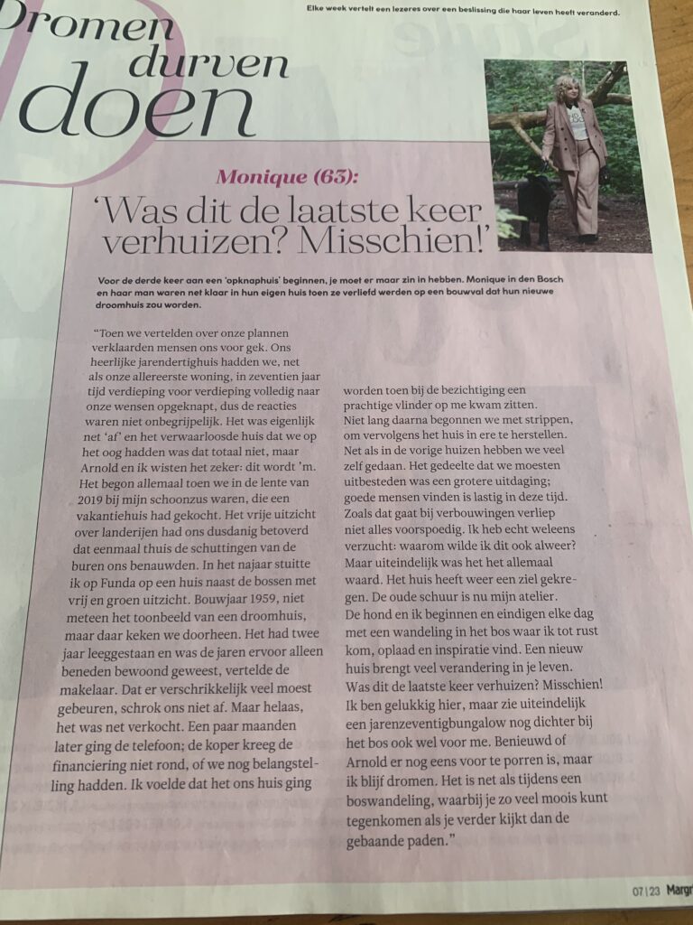 En natuurlijk wilde ik met het artikel in mijn atelier op de foto.